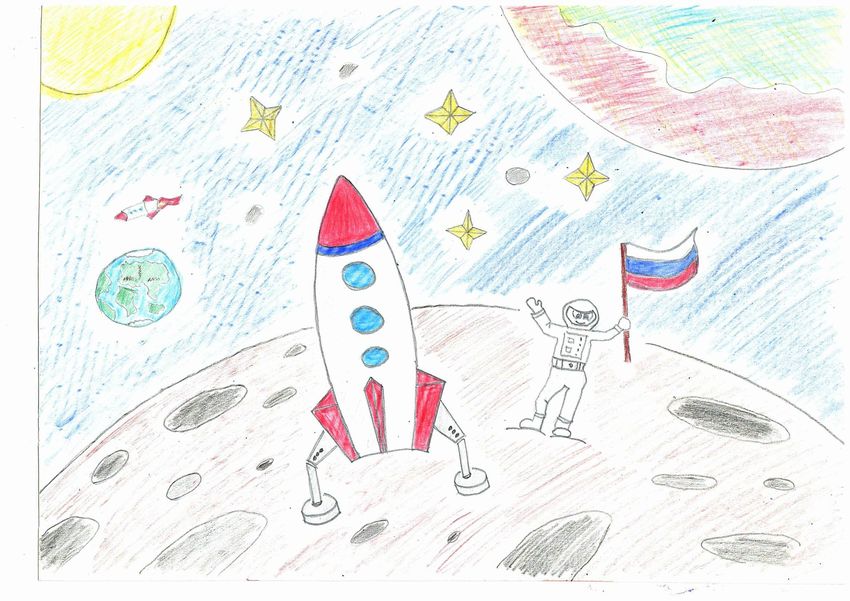 В третьем классе День космонавтики становится настоящим праздником детского воображения. Яркие рисунки, созданные учениками, украшают стены класса, словно окошки в мир космоса. Ракеты, звезды и улыбающиеся астронавты наполняют атмосферу веселья и радости, вдохновляя маленьких художников мечтать о приключениях в космосе и освоении новых галактик.