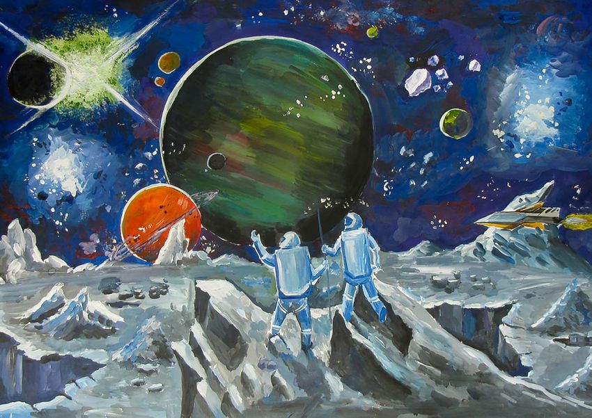 Детские рисунки на тему космос