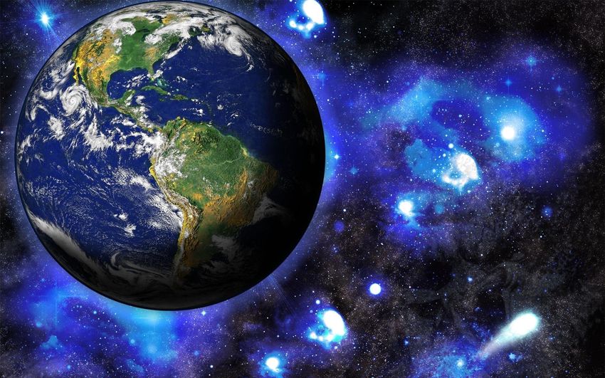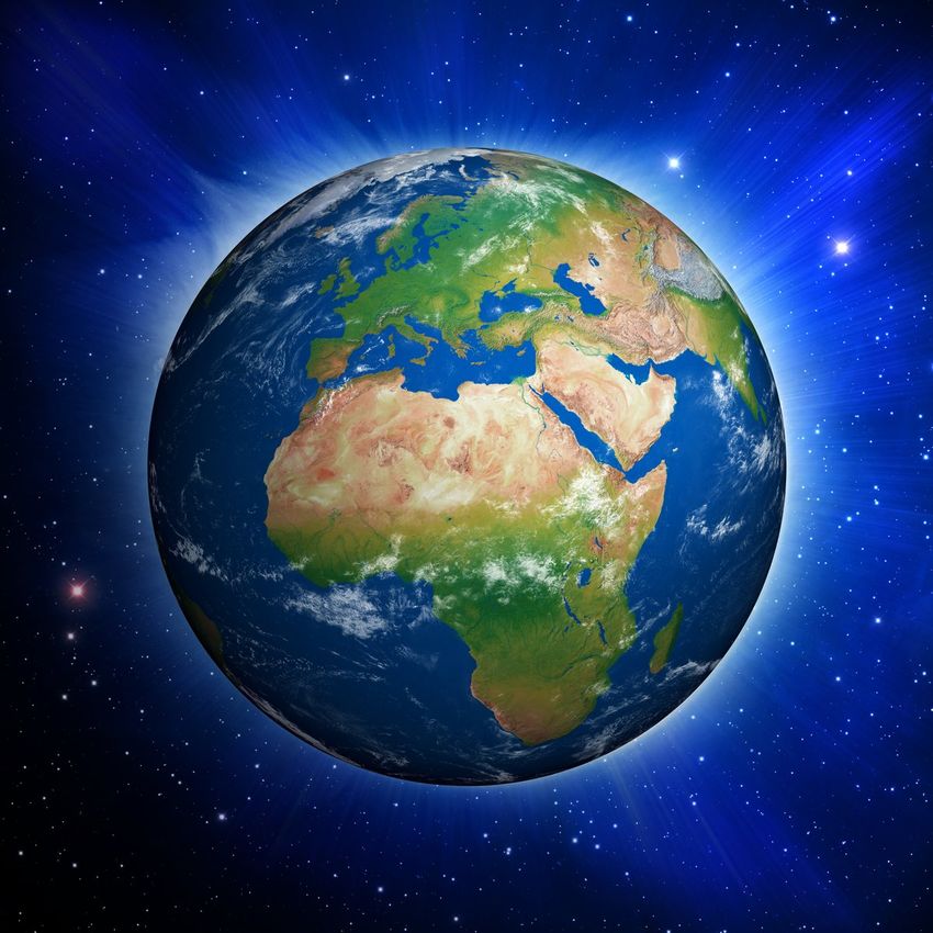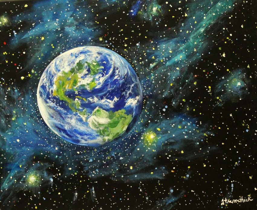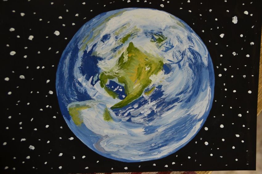 Рисунок Планета Земля из космоса — это потрясающее искусственное воплощение космической красоты. Яркие синие и зеленые оттенки континентов и океанов, атмосферные эффекты и сверкающие облака создают невероятную картину нашего дома во Вселенной. Эта визуальная композиция напоминает о хрупкости и величии нашей планеты, вдохновляя на заботу и бережное отношение к ней.