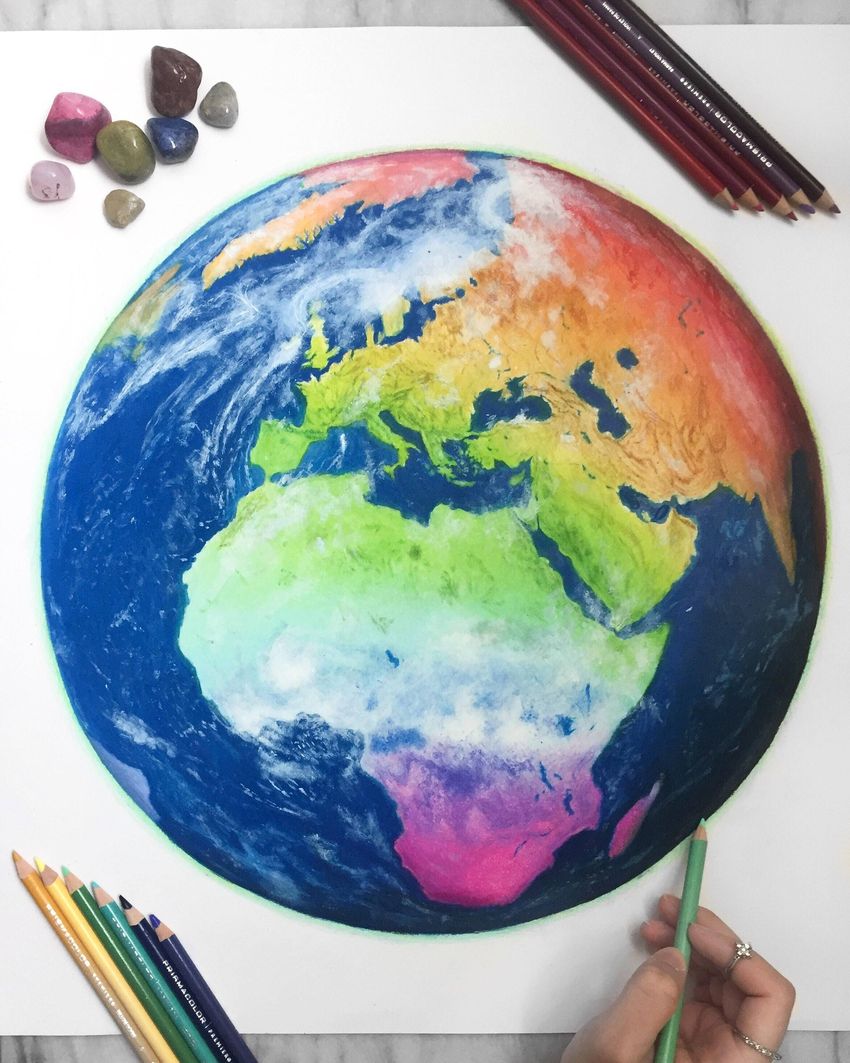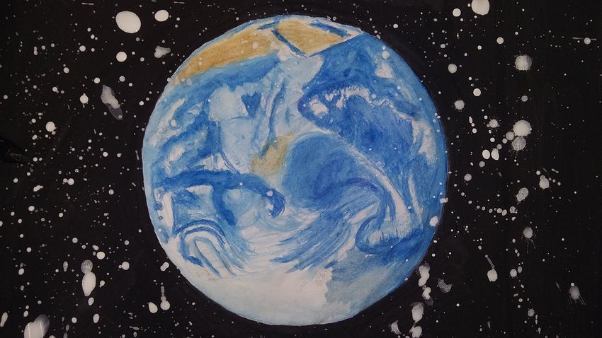 Рисунок Планета Земля красками — это праздник цвета и креатива. Яркие оттенки синего и зеленого, отражающие водные просторы и суши, создают величественную картину. Каждый мазок красок оживляет земной шар, принося в реальность восхитительные контрасты и переливы, которые делают этот рисунок уникальным и невероятно привлекательным.