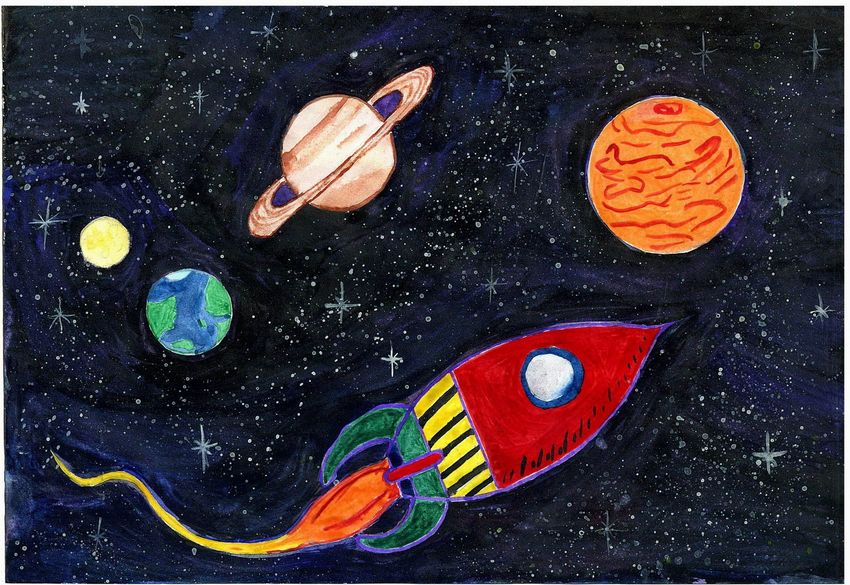 Детские рисунки на тему космос