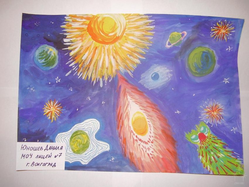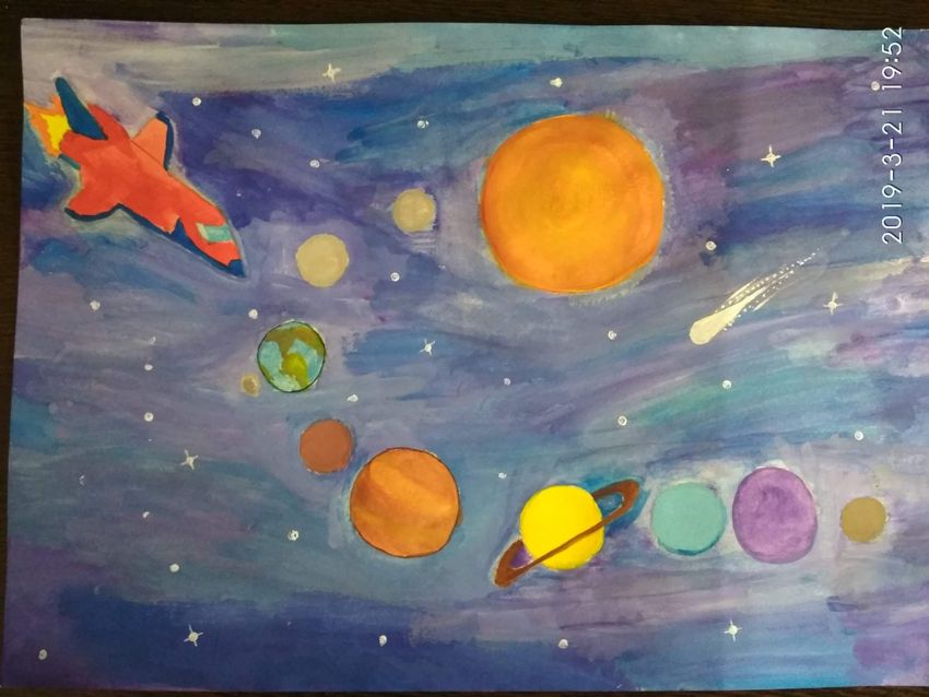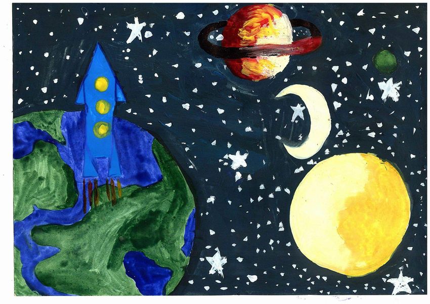 Детские рисунки на тему космос