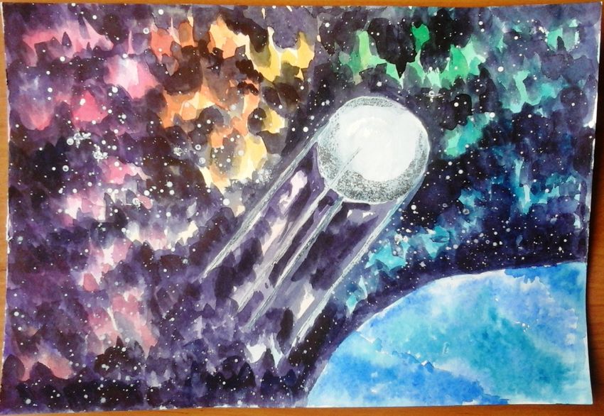 Ракета в космосе гуашью
