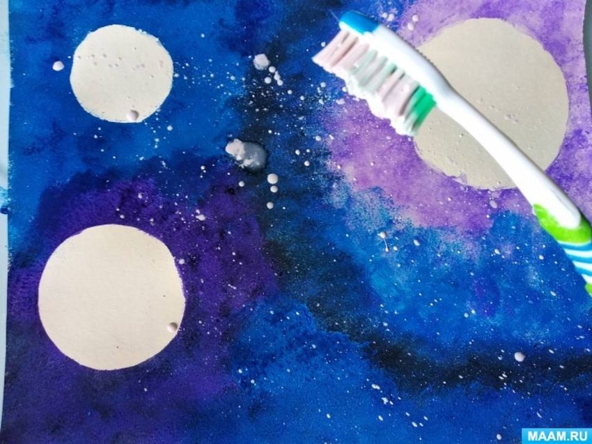 Рисуем космос гуашью 3 года