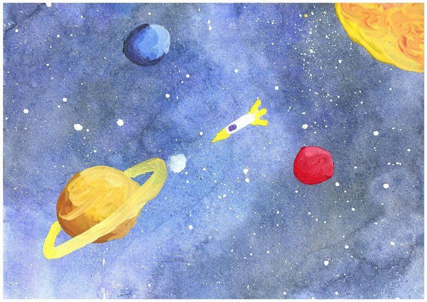 Рисунок космос гуашью