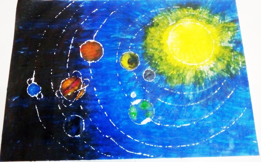 Солнце гуашью в космосе