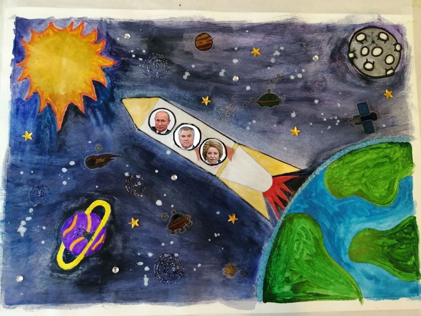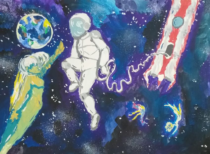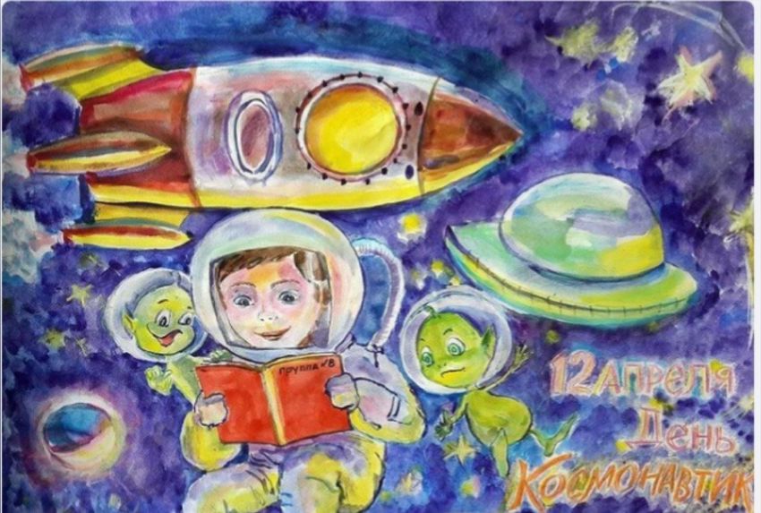 Рисунок космоса, созданный ко Дню Космонавтики, становится визуальным праздничным поздравлением с великими подвигами в исследовании вселенной. Яркие цвета и изображение ракет и звезд подчеркивают важность этого дня, приглашая нас увидеть космос глазами вдохновленных художников.