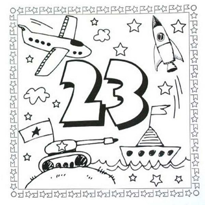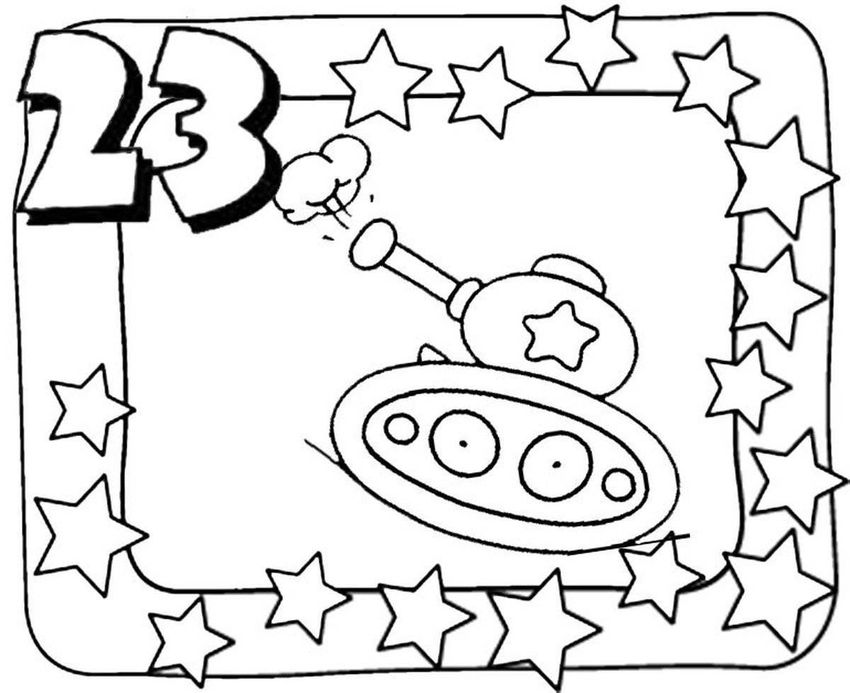Открытка раскраска к 23 февраля