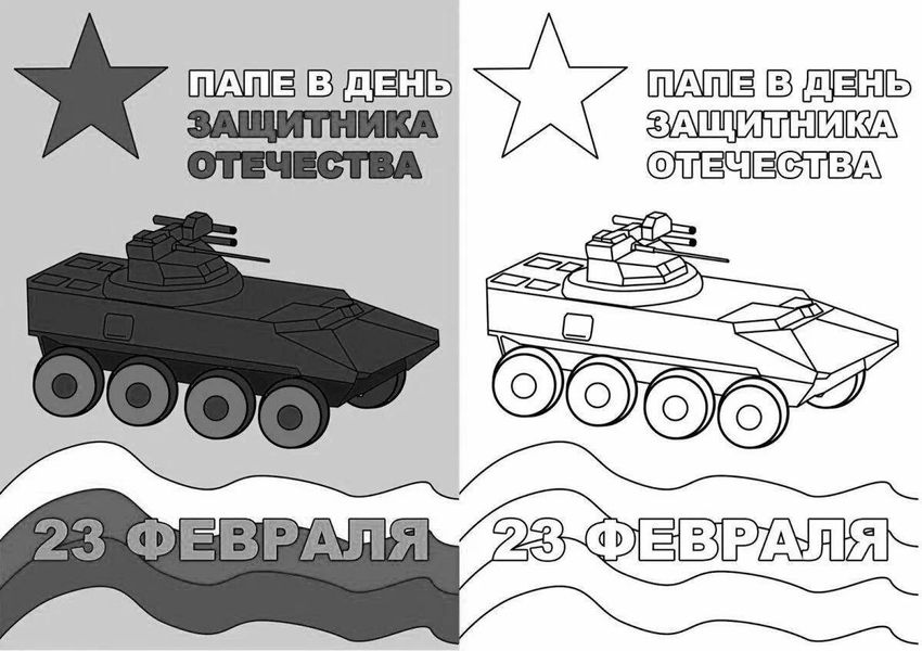 Раскраска на 23 февраля папе танк