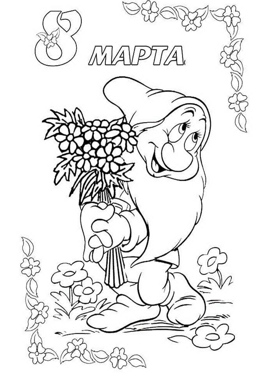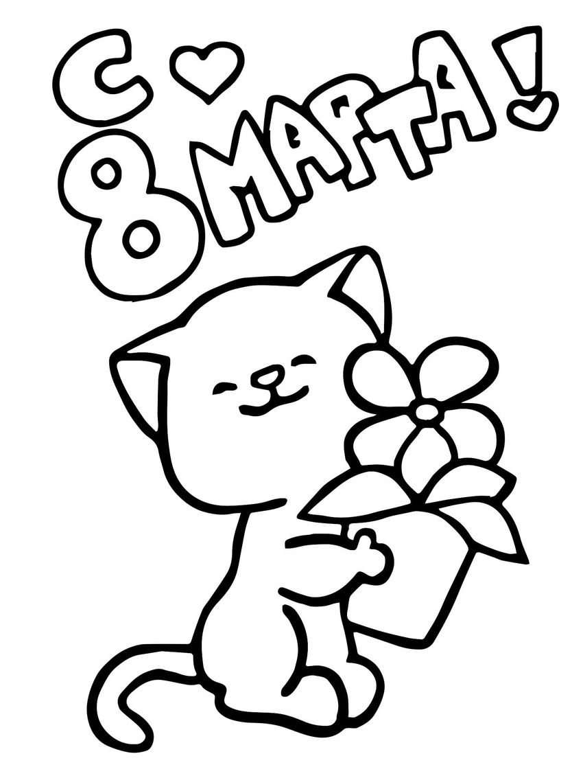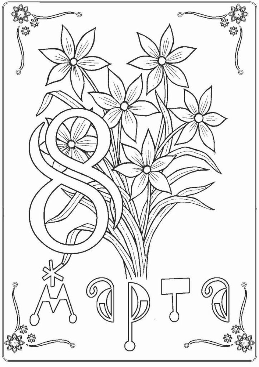 Восьмое марта раскраска