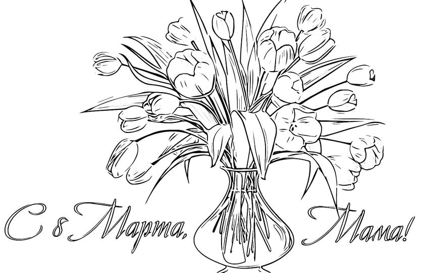 Открытка к 8 марта раскраска