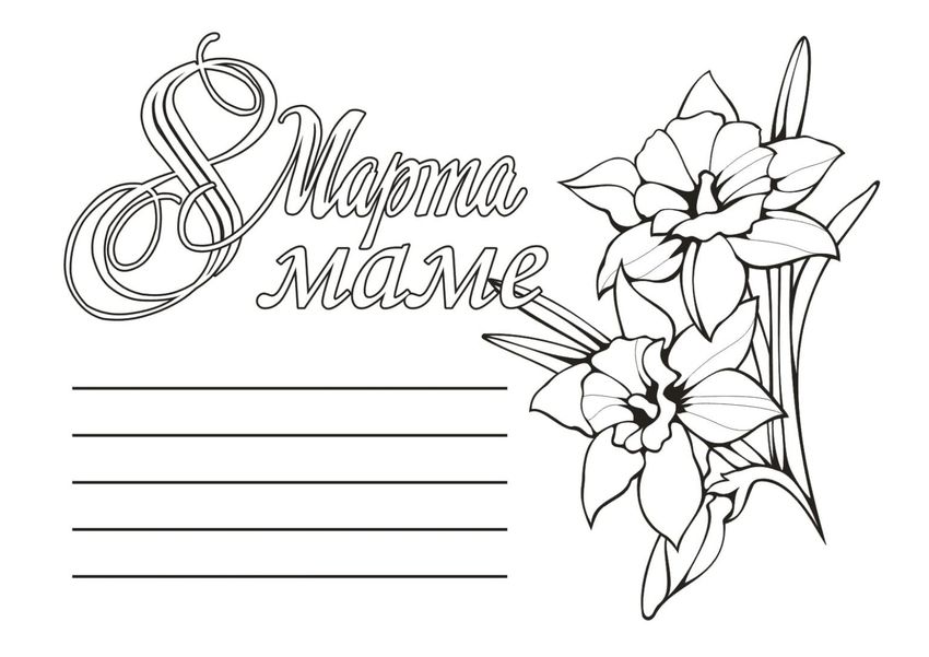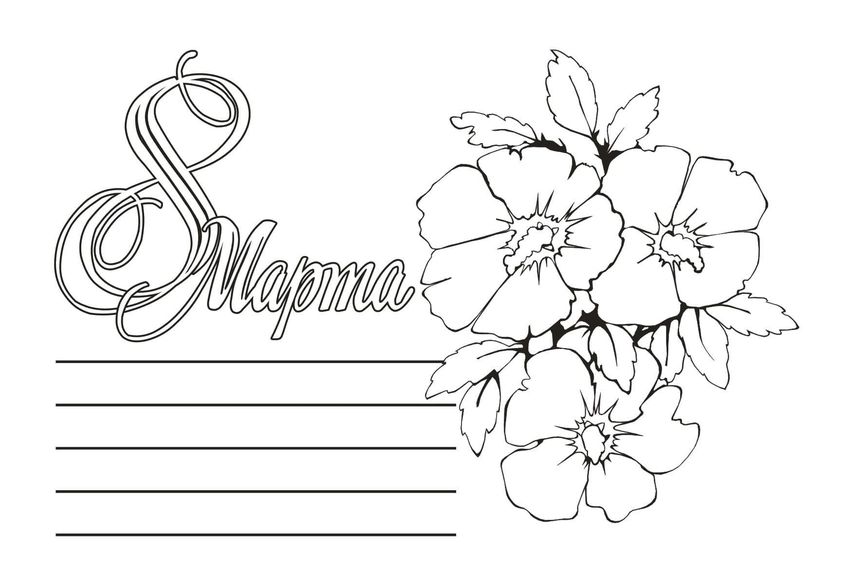 Открытка на 8 марта раскраска