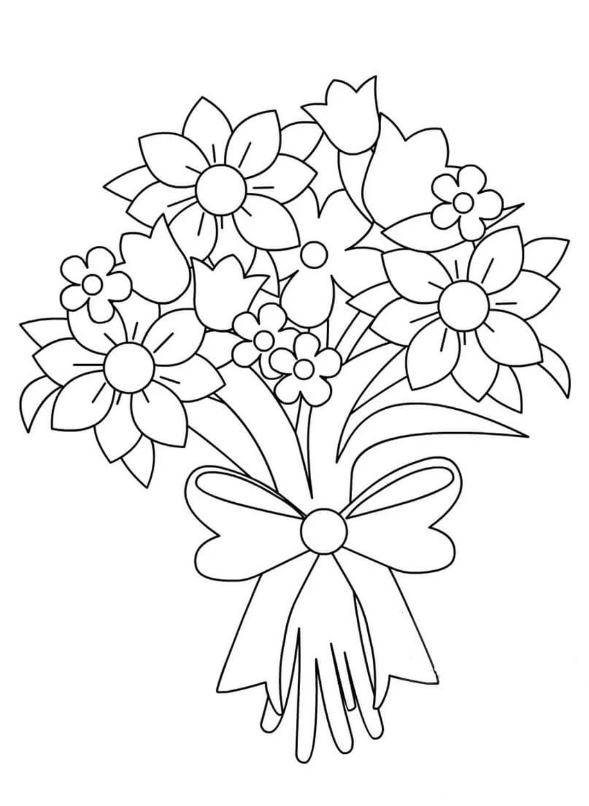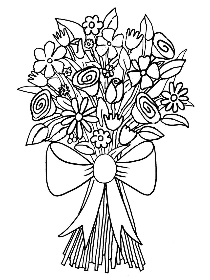 Букет для мамы раскраска
