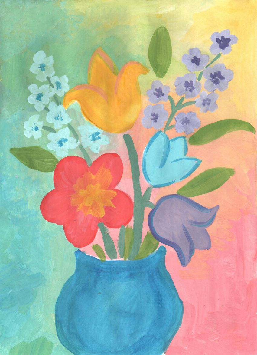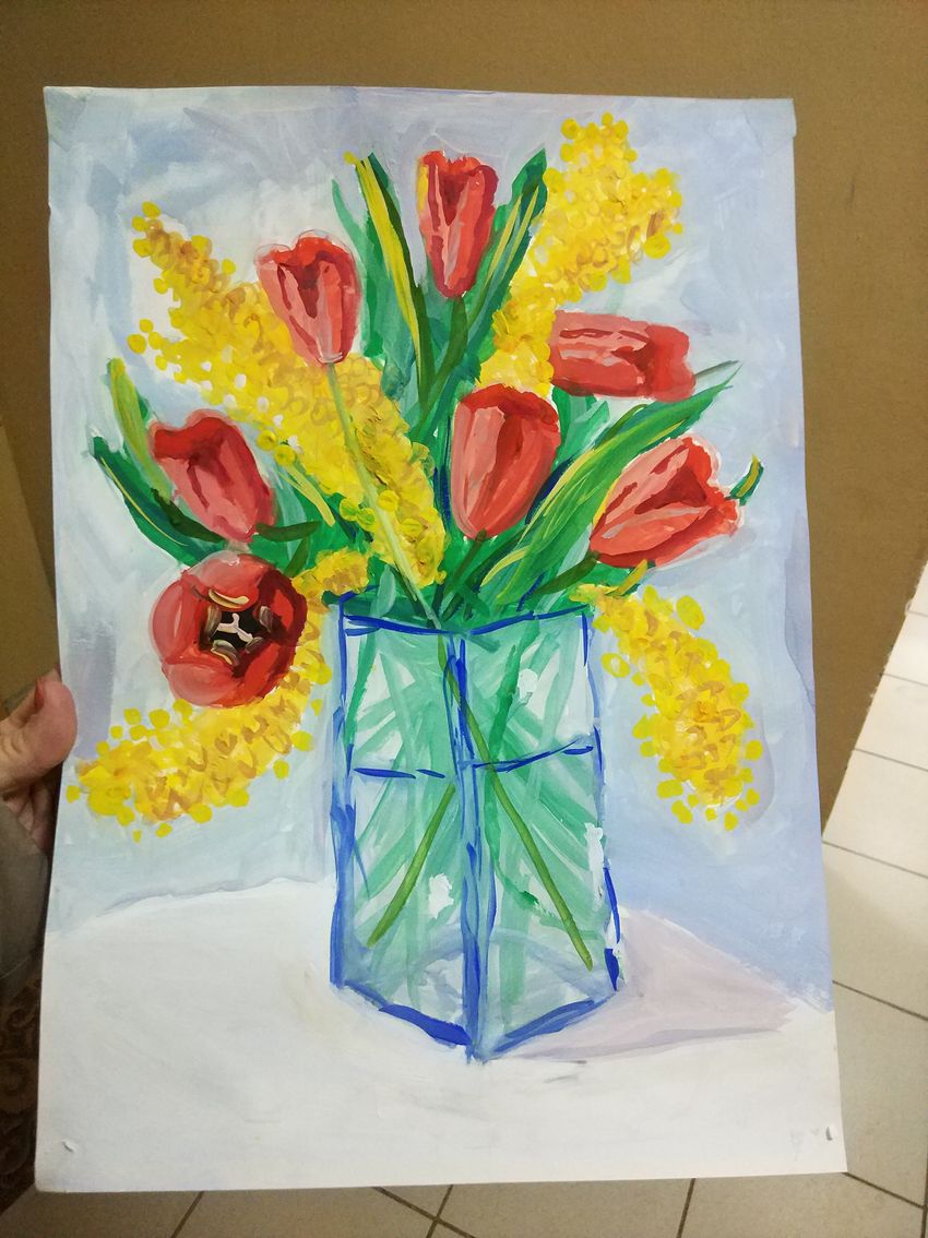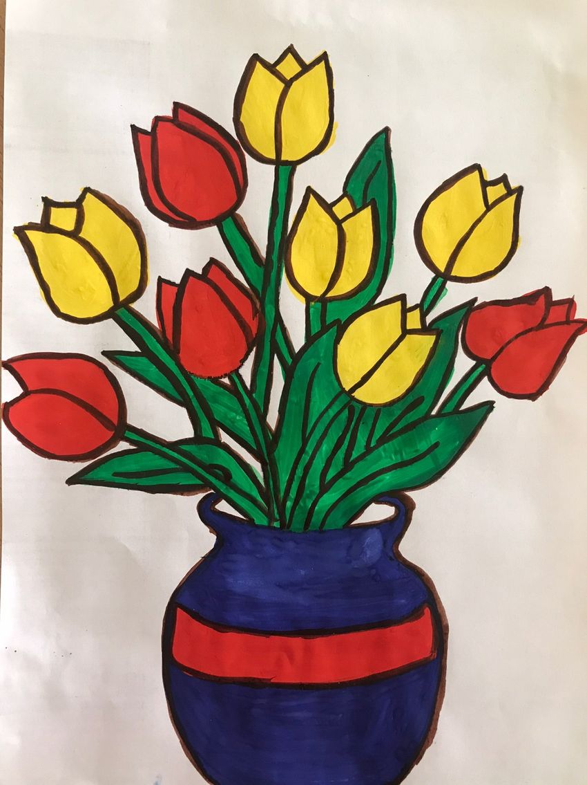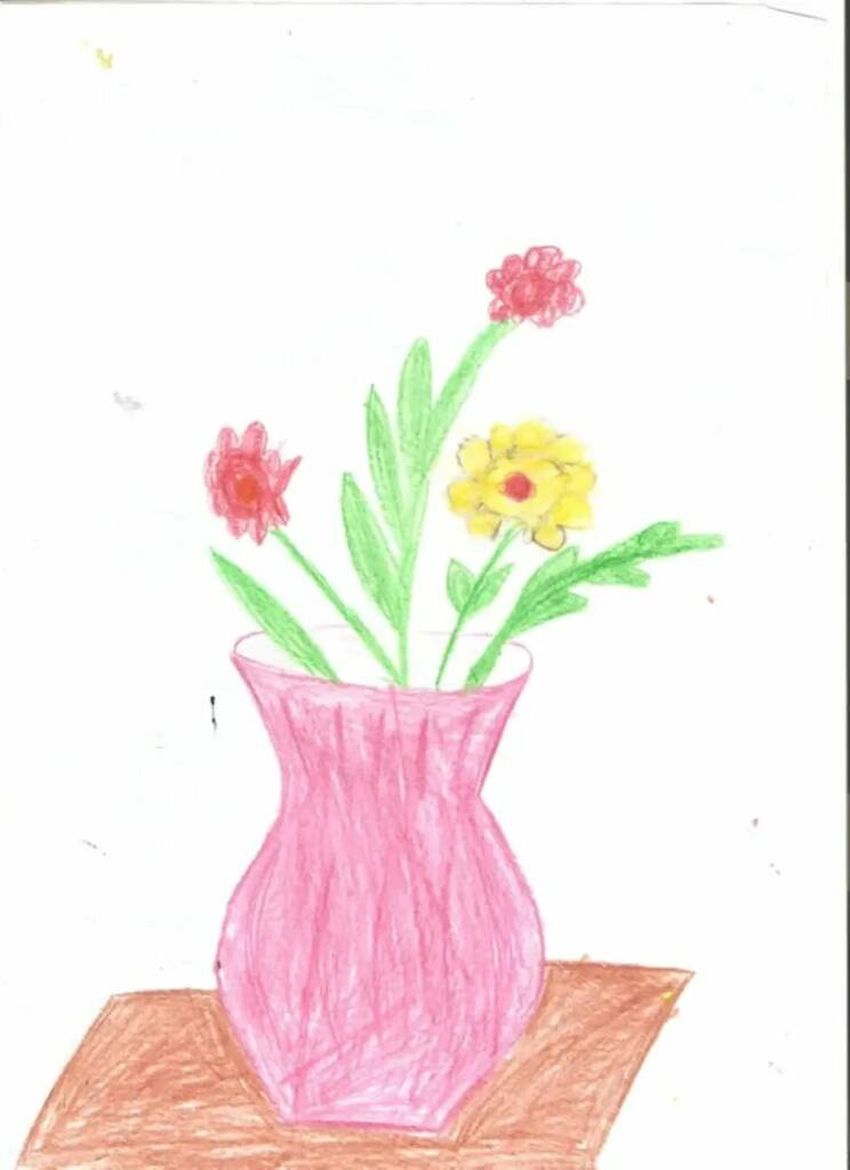 Ваза с цветами рисунок красками
