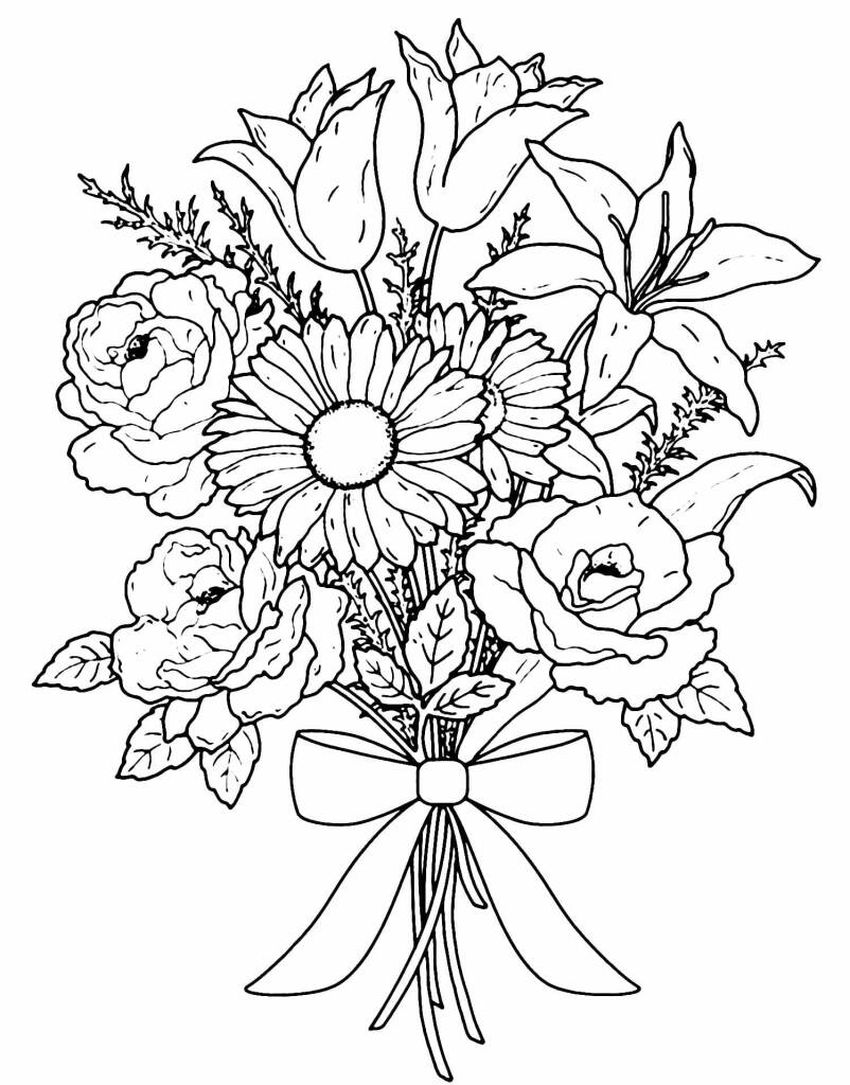 Букет цветов раскраска