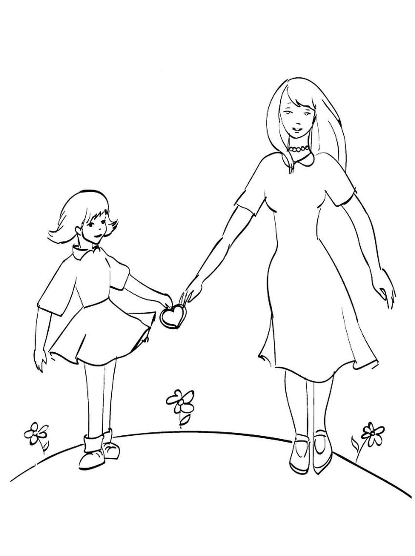 Раскраска мама и дочь