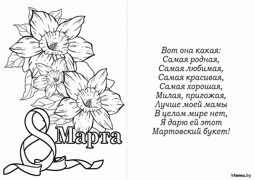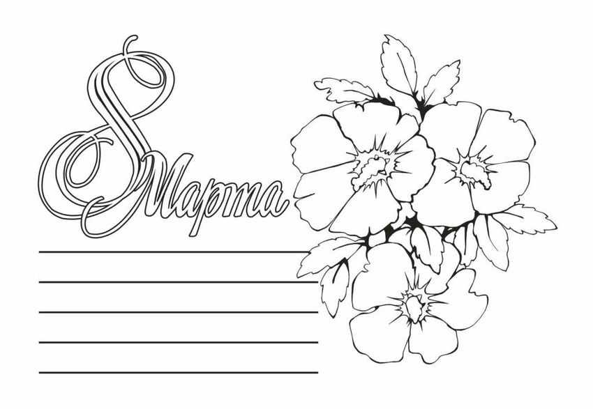 8 марта открытка раскраска