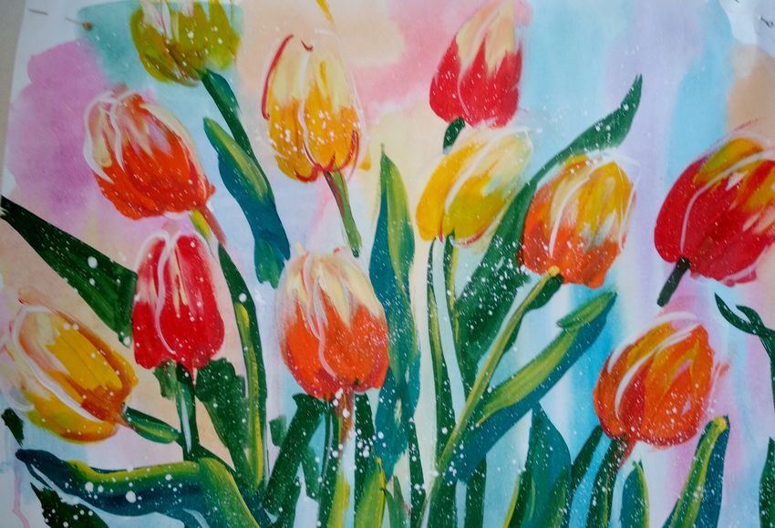 Тюльпаны гуашью