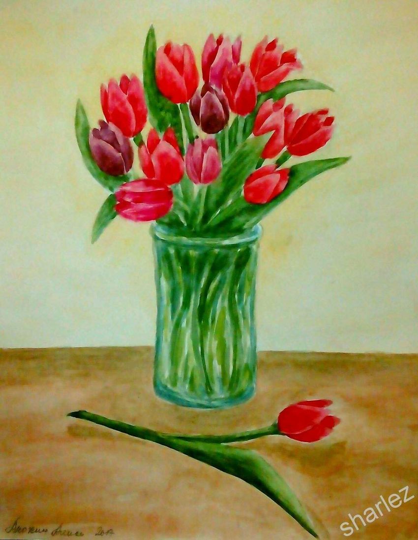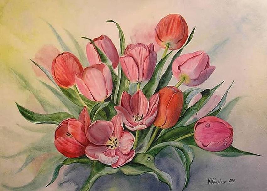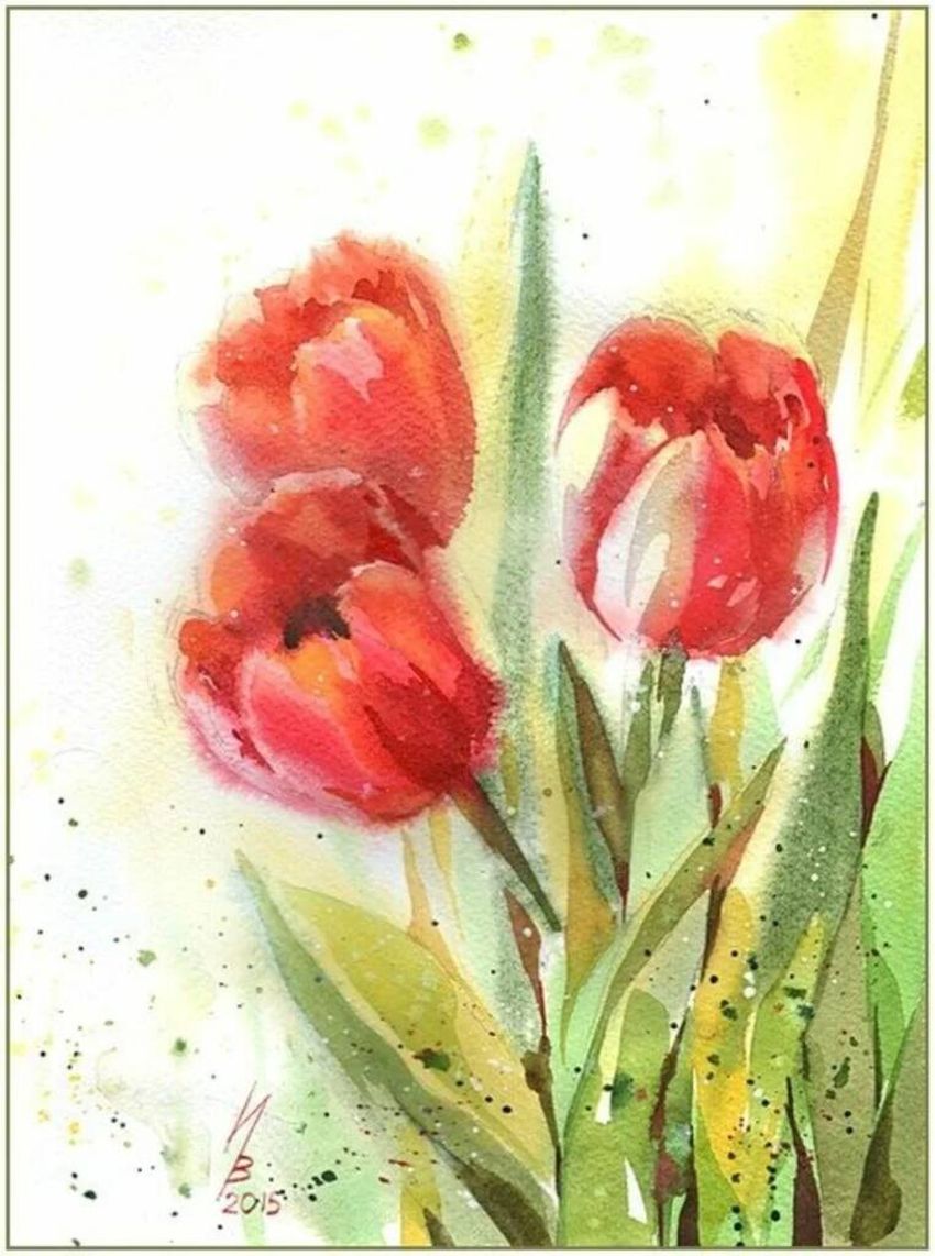 Тюльпаны акварелью
