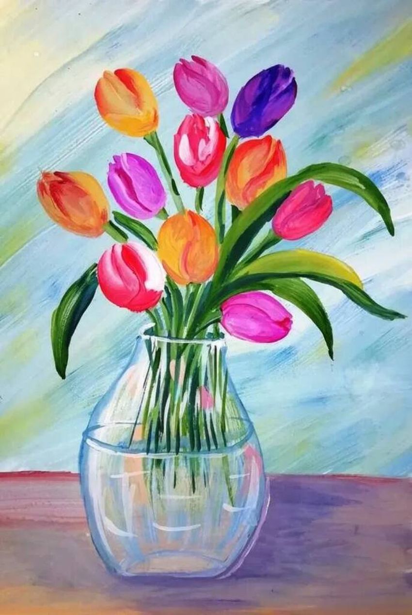 Ваза с цветами рисунок красками