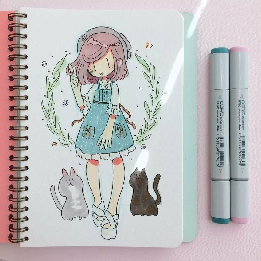 Рисунки для скетчбука в стиле кавай