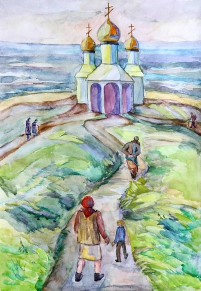 Рисование дорога к храму