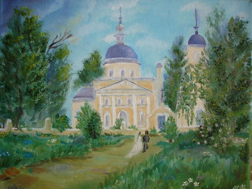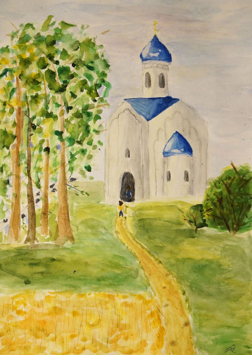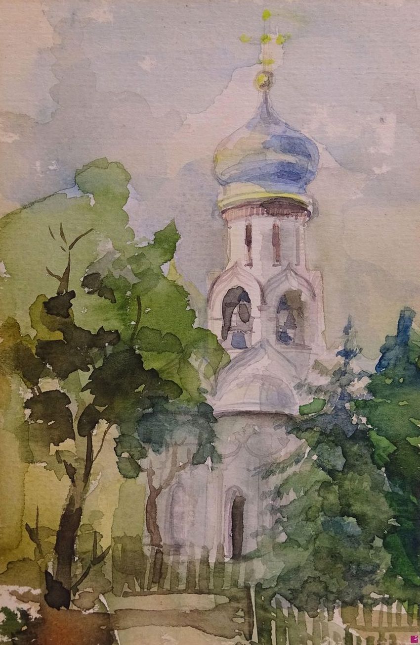 Трушникова пейзаж церковь акварель