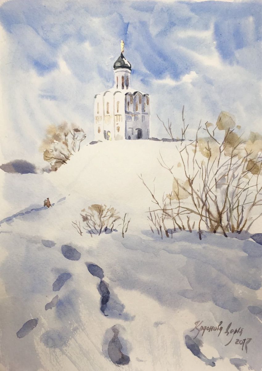 Церковь покрова на нерли акварель