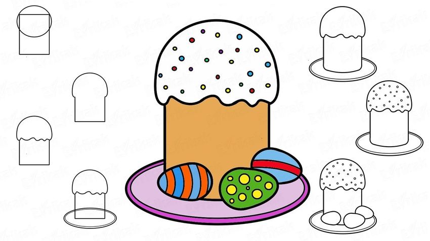 Пасхальный кулич рисунок поэтапно