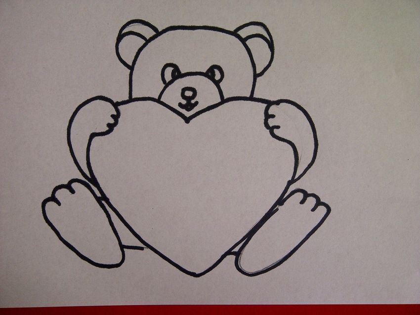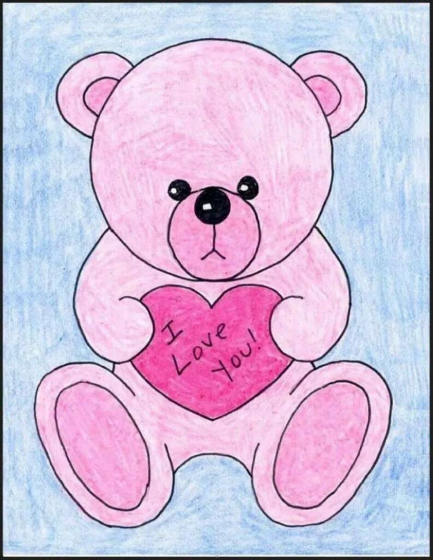 Рисунок мишка с сердечком карандашом