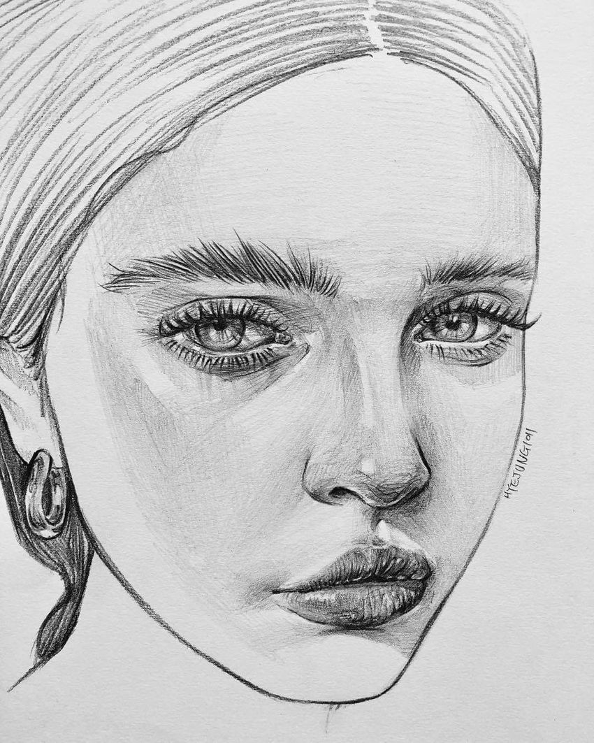Рисунок лицо девушки карандашом