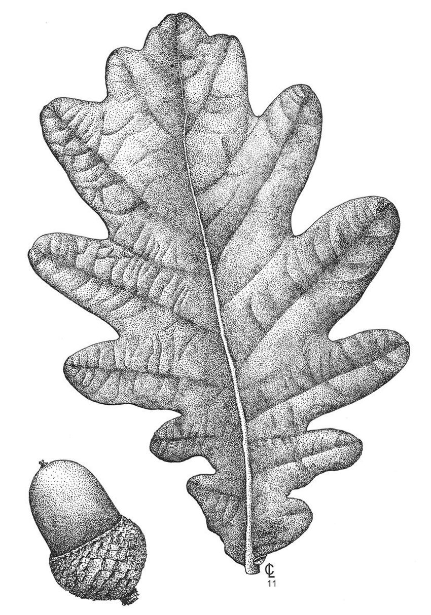 Дуб черешчатый ботаническая иллюстрация