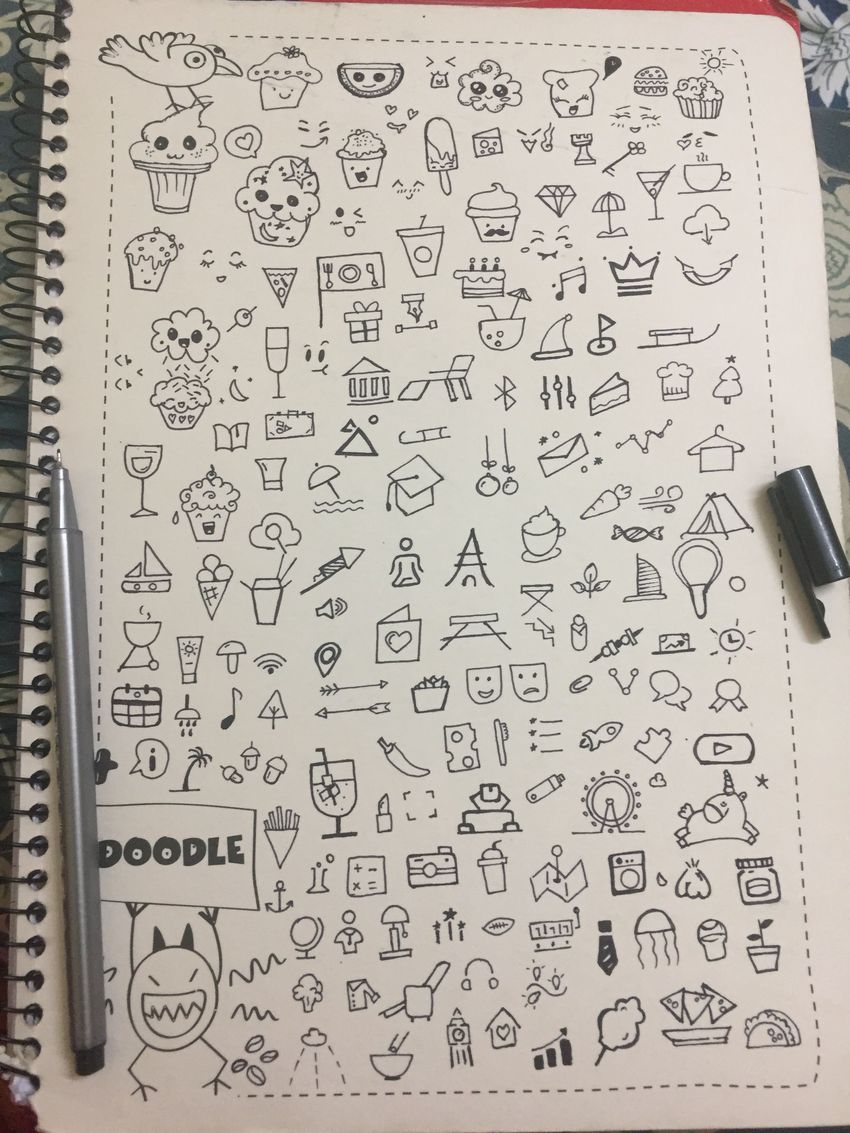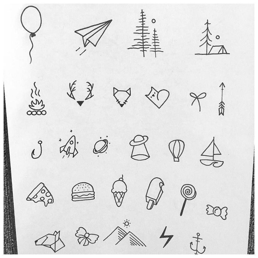 Маленькие рисунки черной ручкой