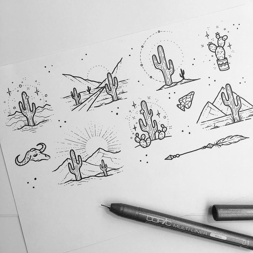 Маленькие рисунки для скетчбука черной ручкой