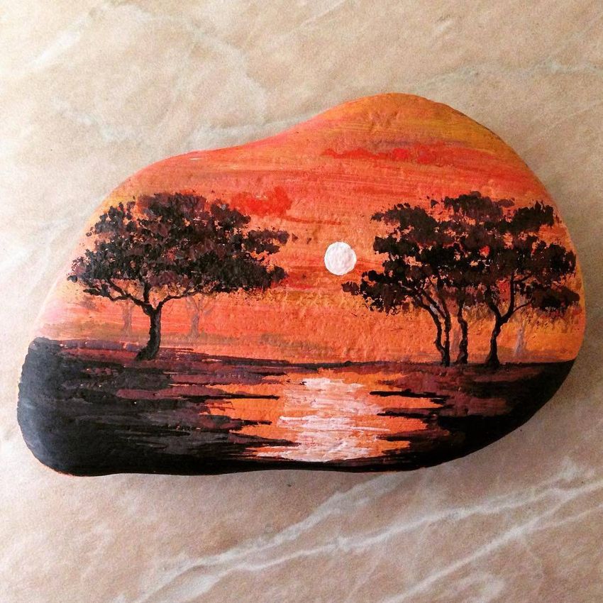 Рисование акрилом на камнях