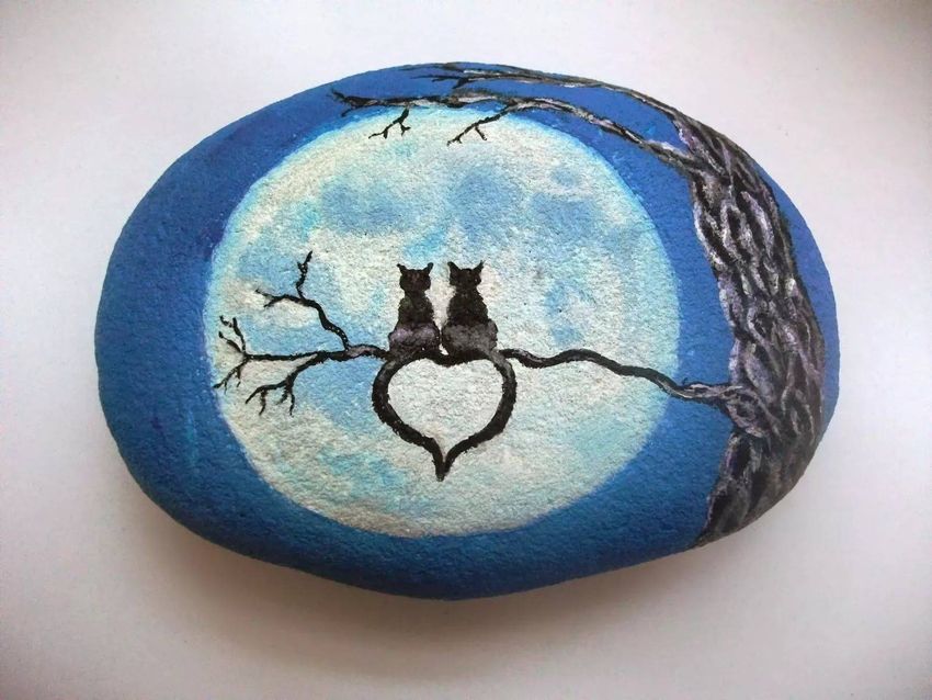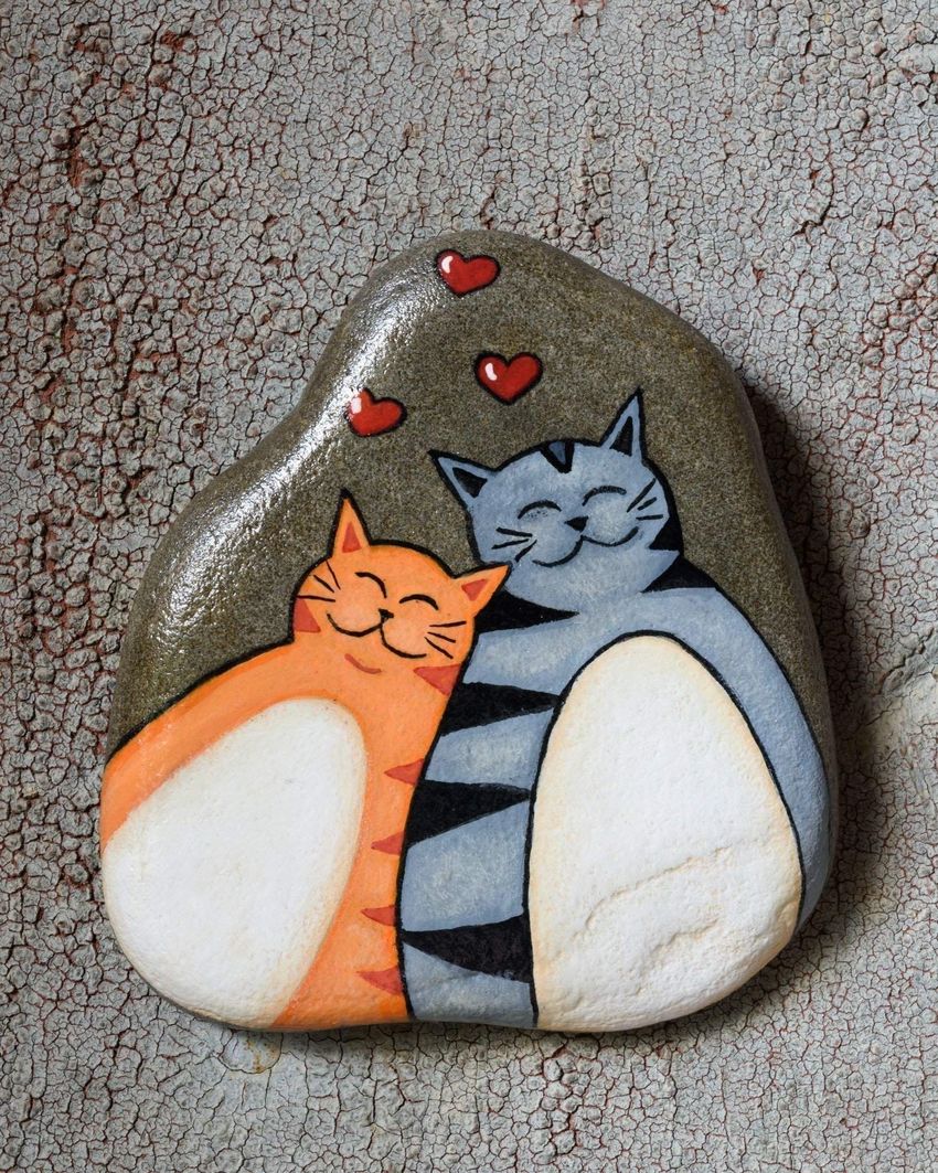 Роспись камней кошки