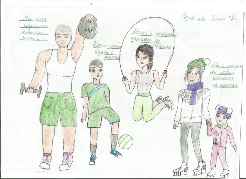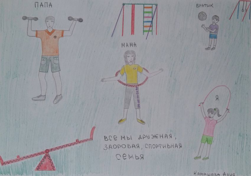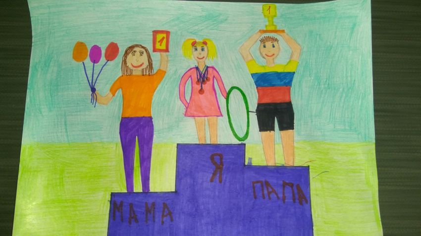 Рисунок Мама, Папа, Я воплощает дух спортивной семьи, ее единство и взаимопонимание. Этот образ передает не только любовь, но и преданность здоровому образу жизни. Он напоминает о значимости семейных ценностей, совместных занятий спортом, а также поддержки и вдохновения, которые дарит семья в стремлении к спортивным достижениям.