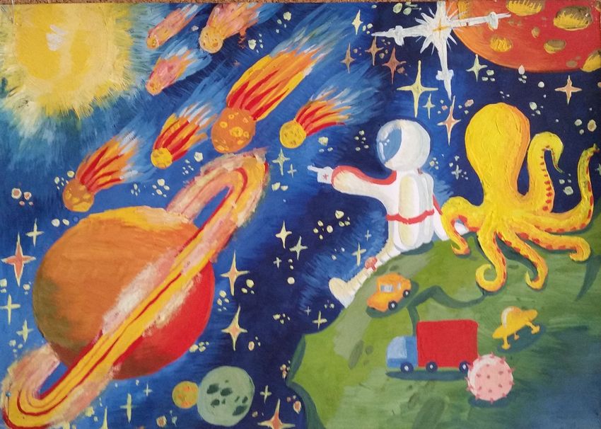 Детские рисунки на тему космос