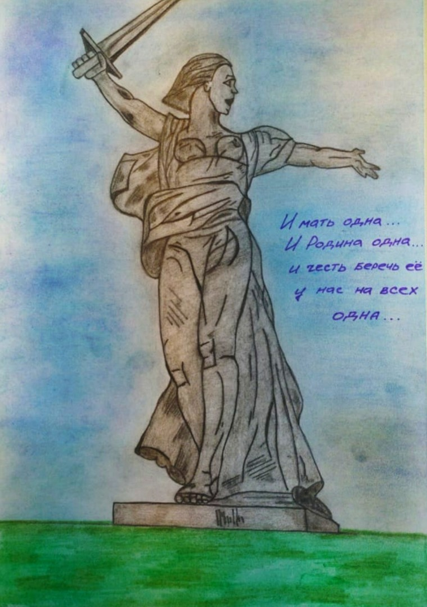 Рисунок Родина-мать карандашом воспевает величие и символику этого памятника. Созданный тонкими линиями карандаша, он передает внушительность и мощь памятника, сохраняя его изящество. Этот рисунок не только является проявлением художественного мастерства, но и вдохновляет на размышления о героизме и защите Родины, оставляя глубокие впечатления у зрителей.