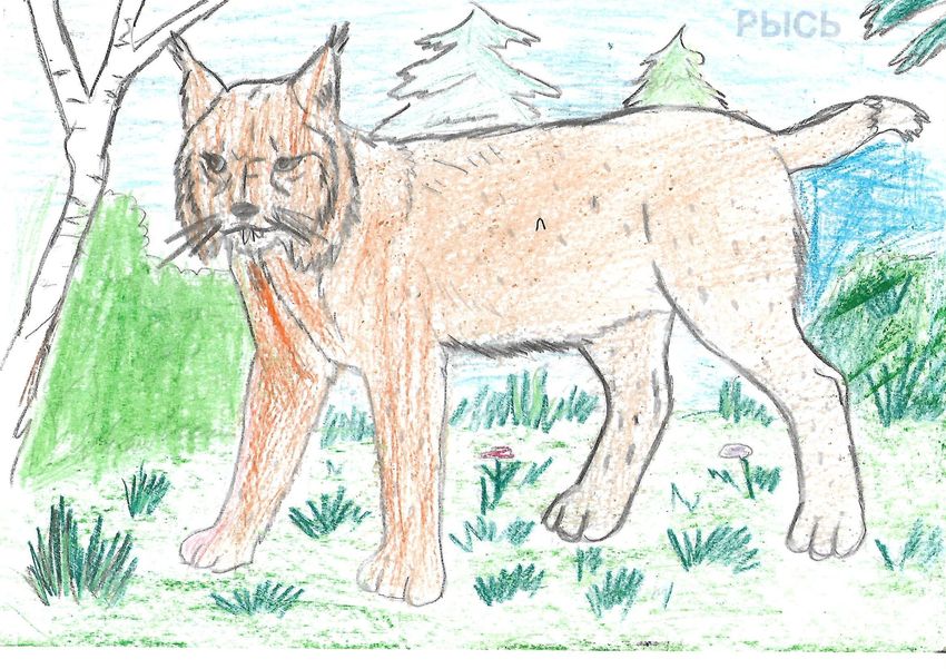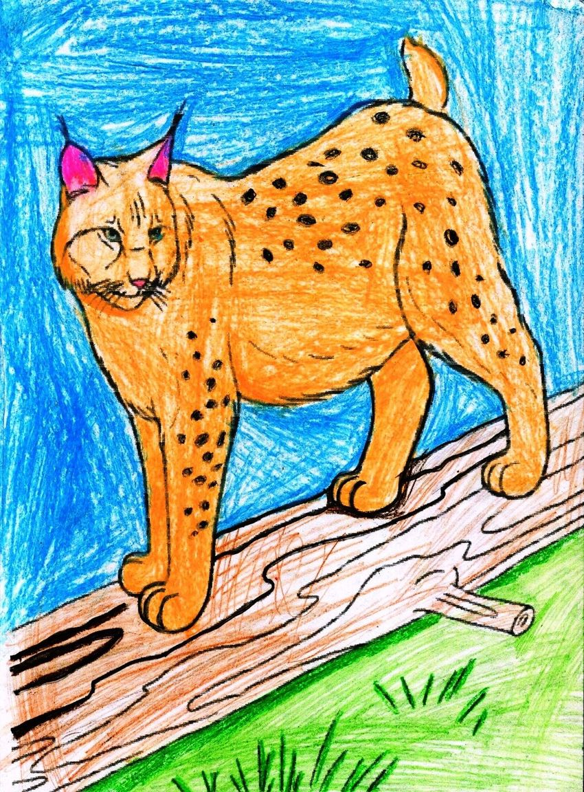 Рысь рисунок детский
