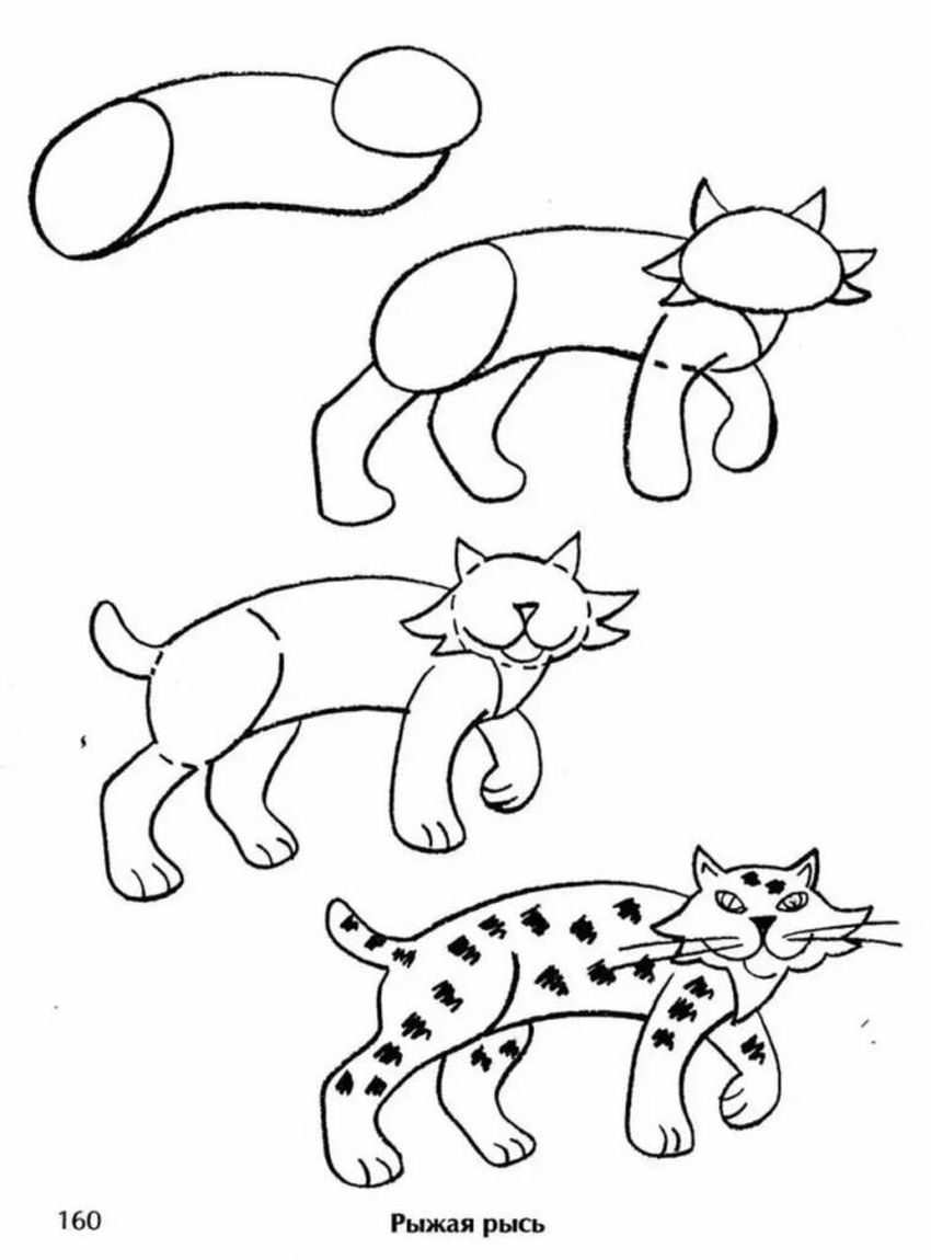 Рысь рисунок для детей карандашом