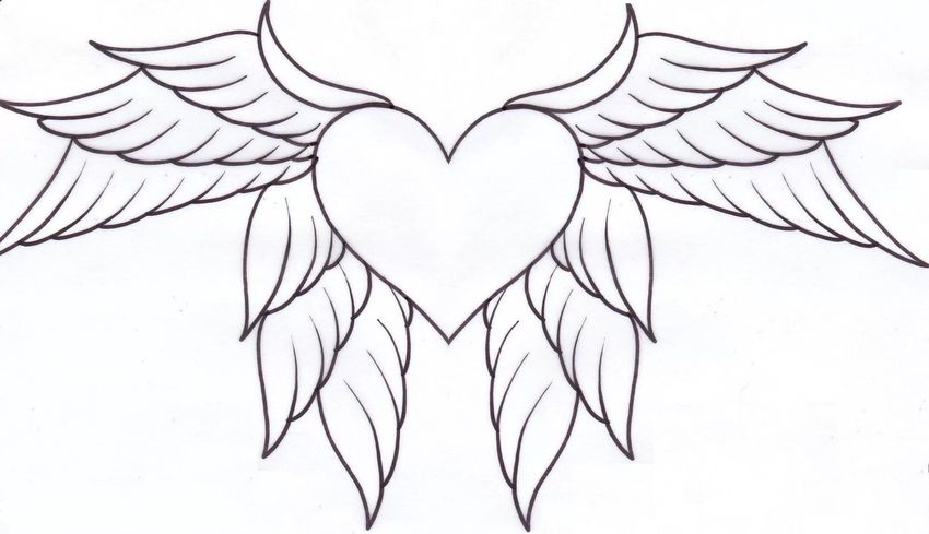 Рисунки карандашом сердечки с крыльями