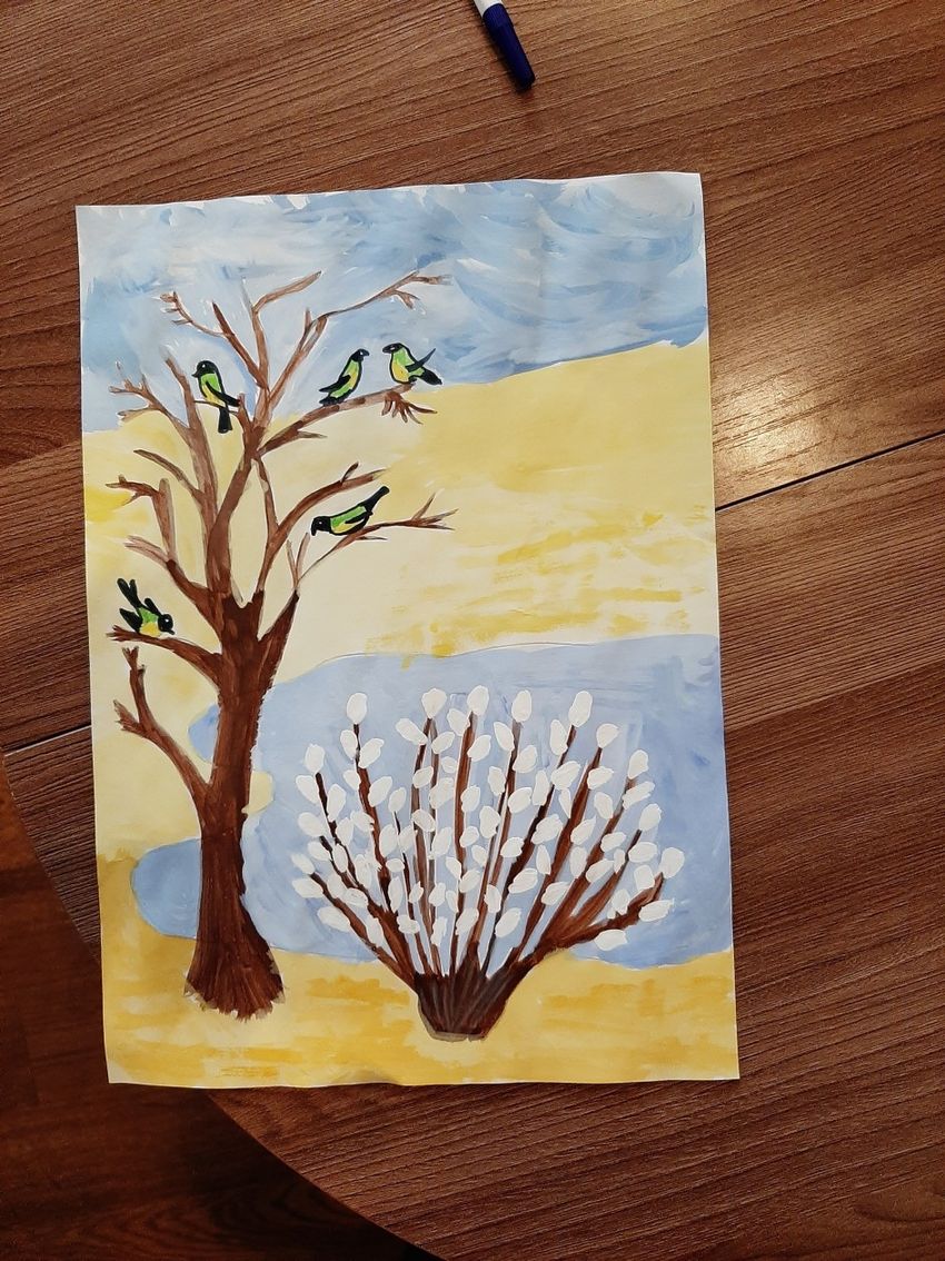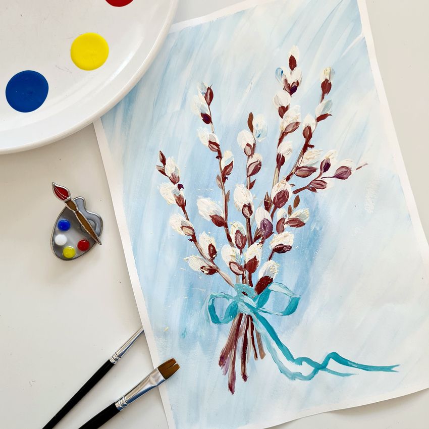 Верба рисунок красками
