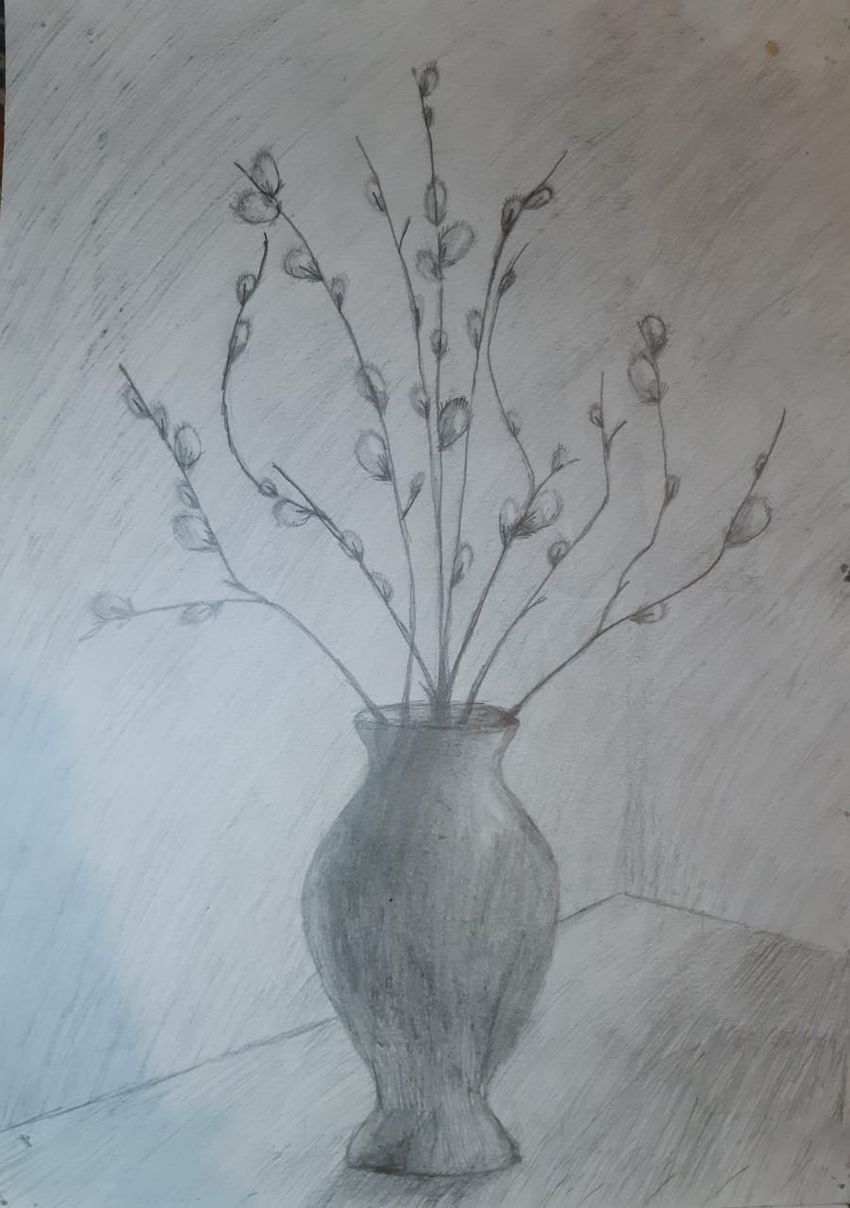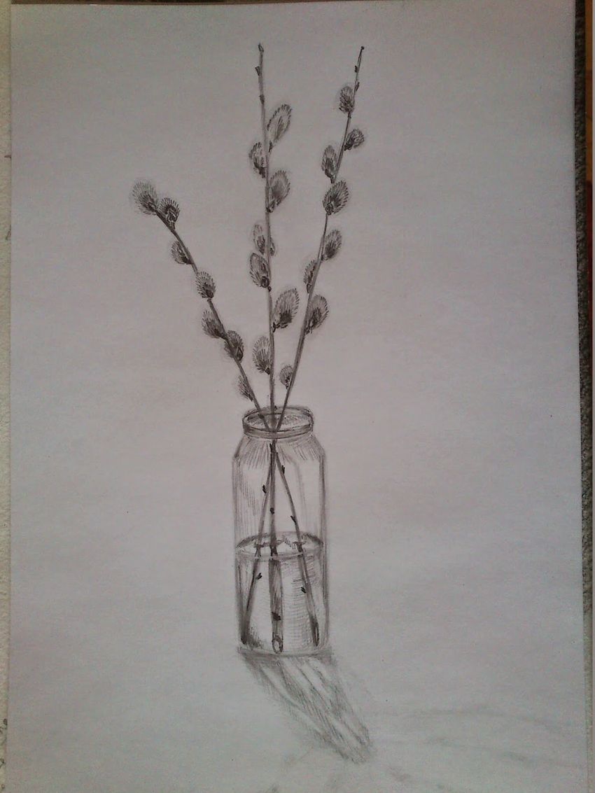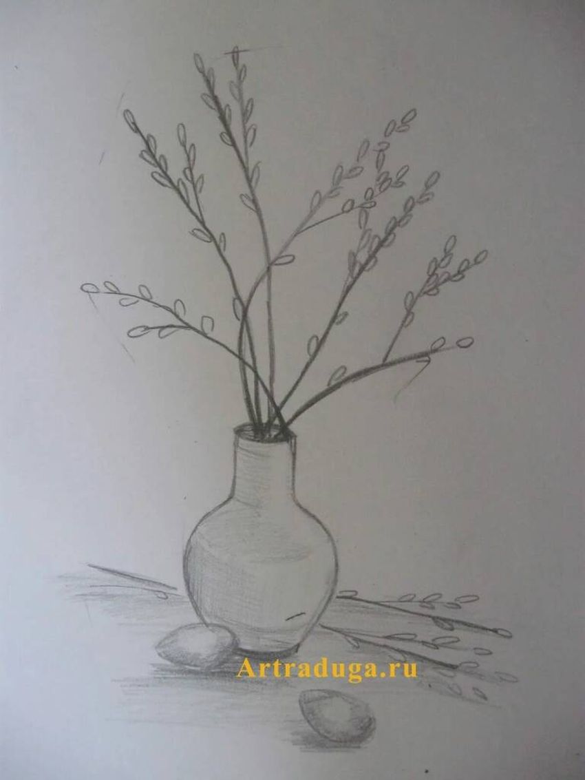 Ваза с вербой карандашом