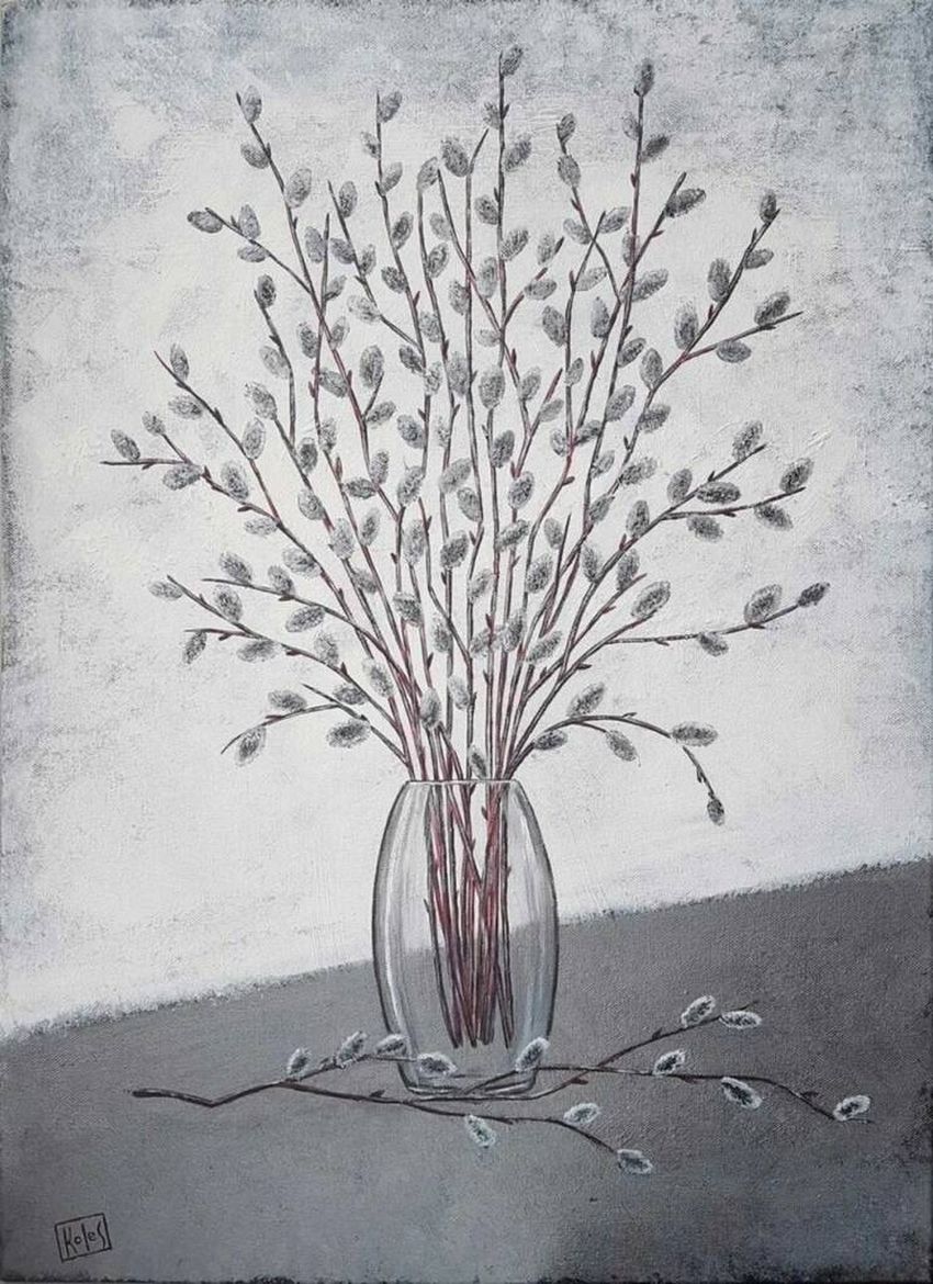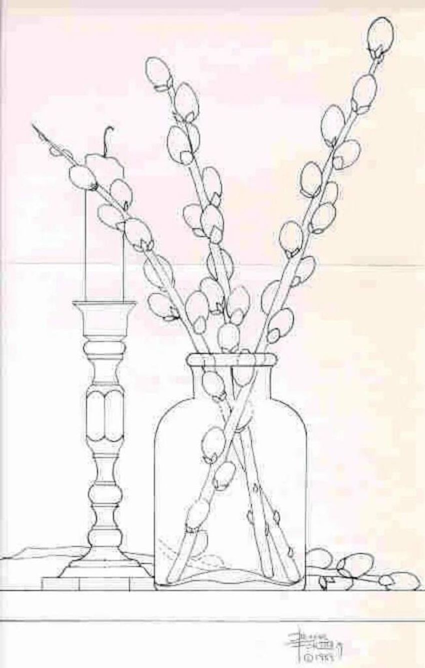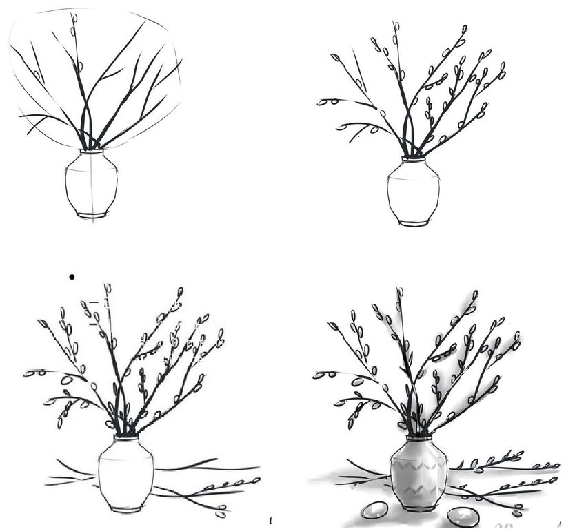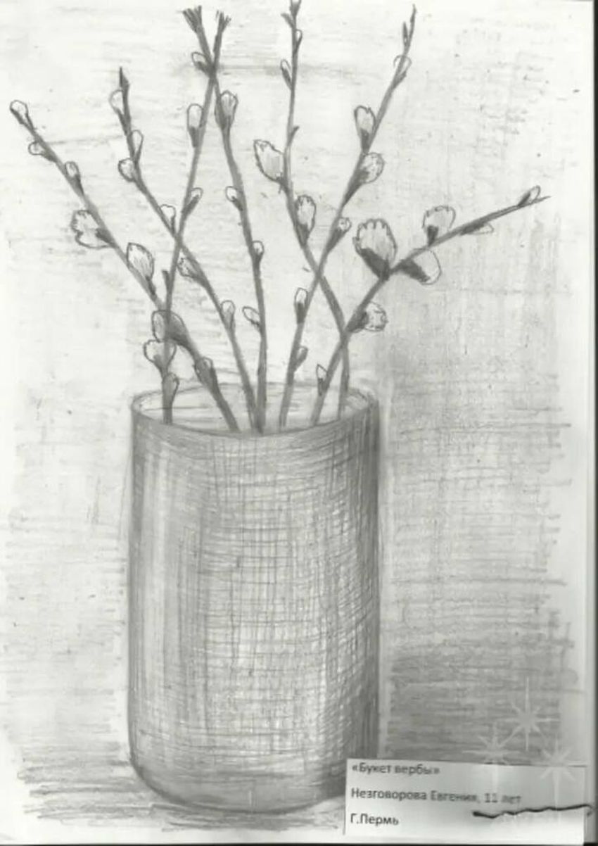 Ваза с вербой карандашом