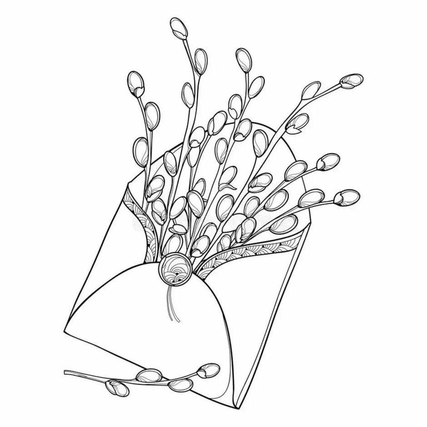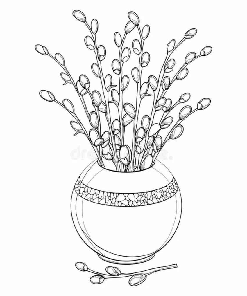 Ветка вербы раскраска