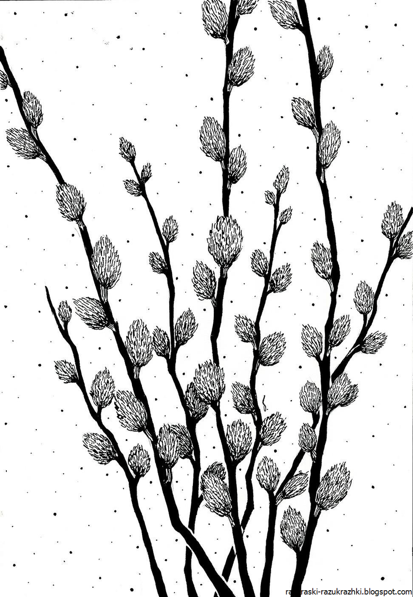 Ветка вербы рисунок