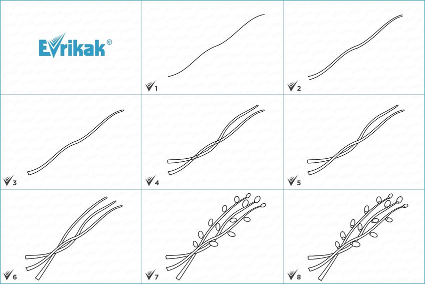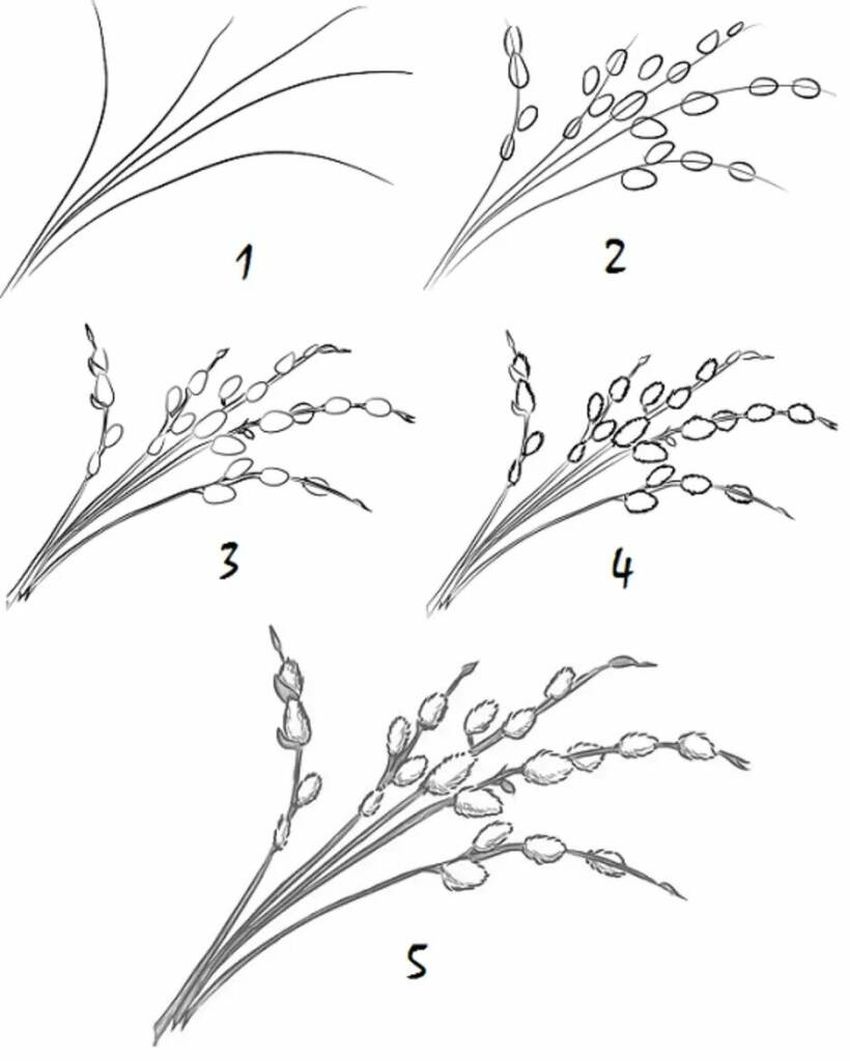 Веточка вербы поэтапное рисование