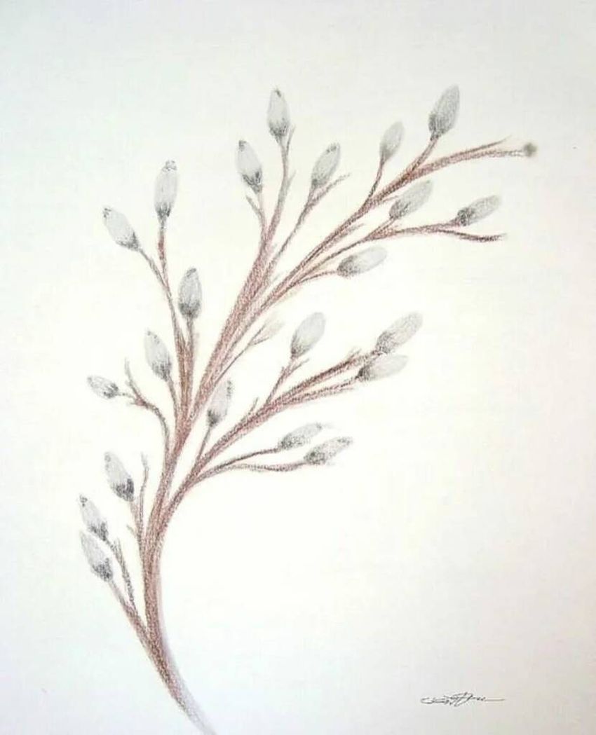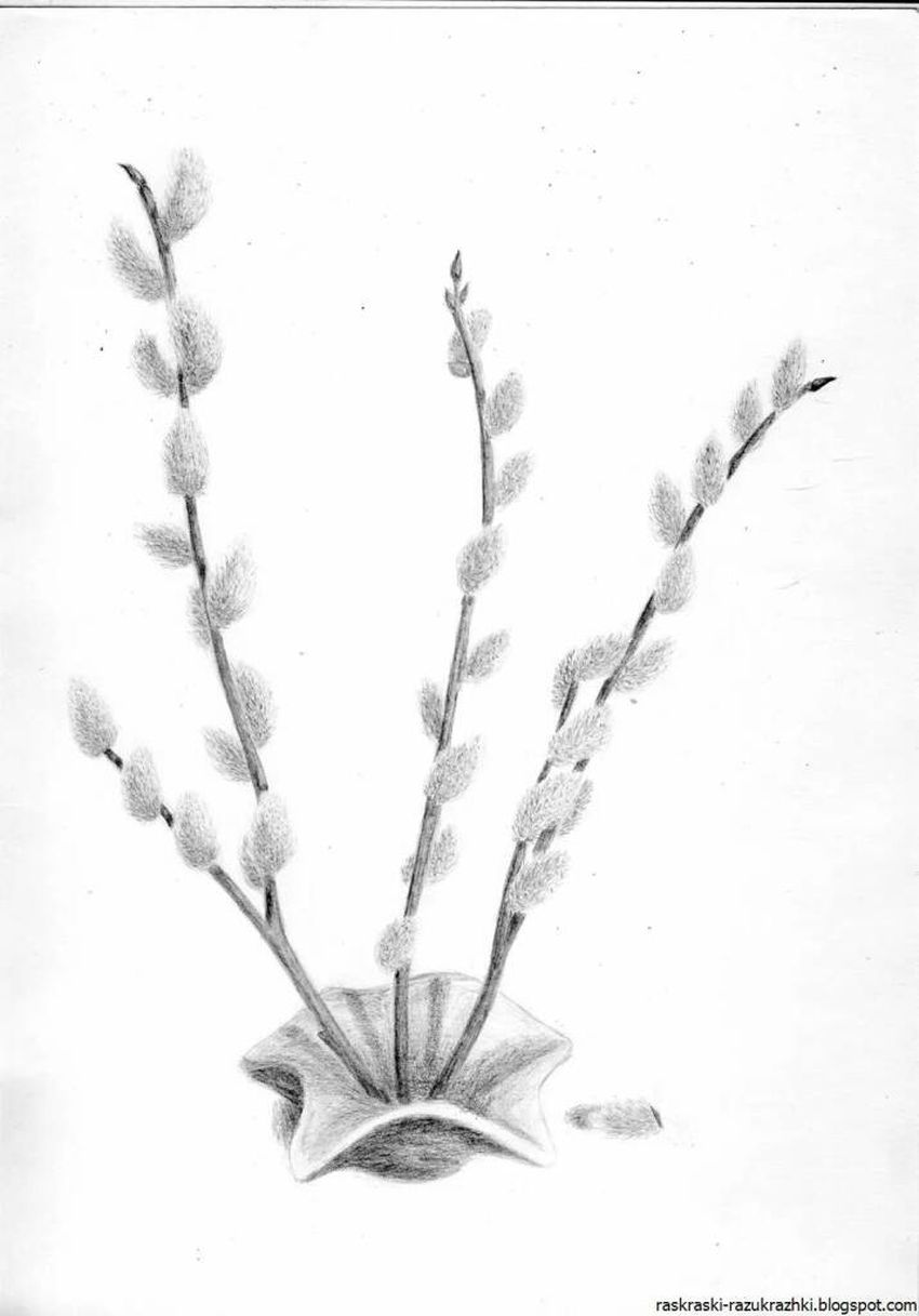 Веточка вербы рисунок карандашом