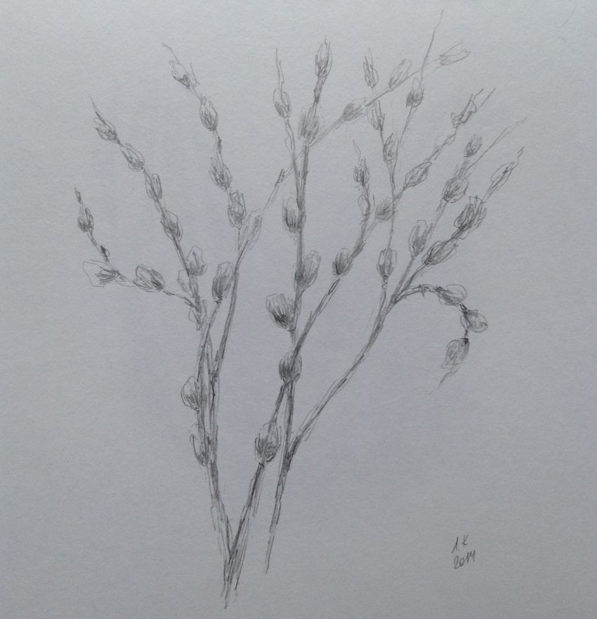 Веточка вербы карандашом
